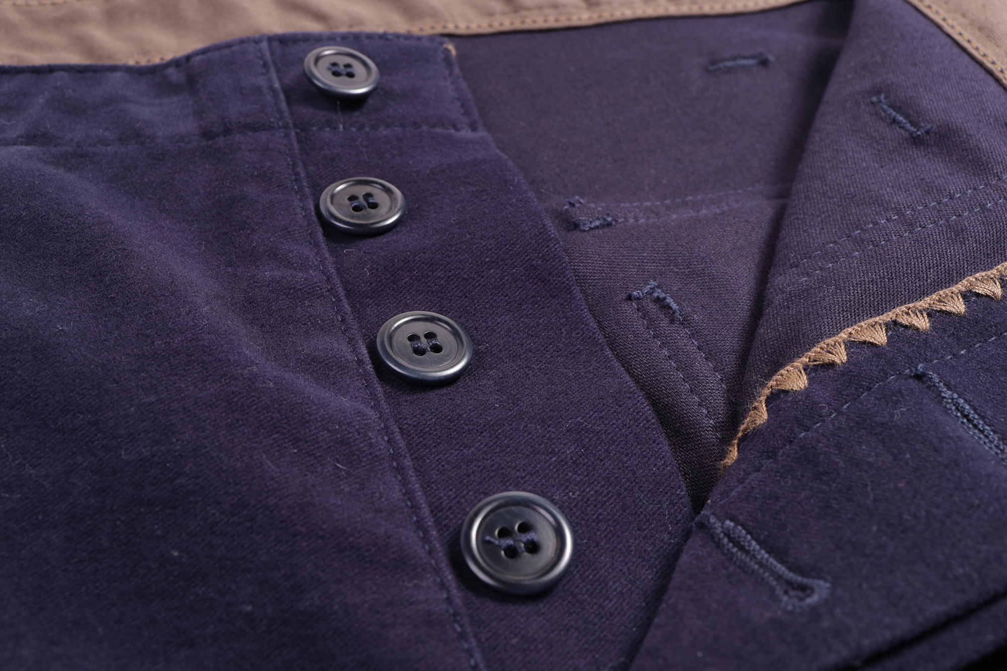 Warm and comfortable Italian moleskin fabric.
