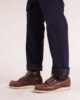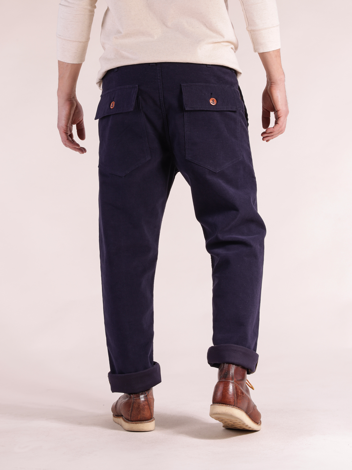 This Companion Fatigue Moleskin Navy comes in a newly developped cut. The relaxed fit is suitable for all body types, being comfortable and easy to wear since day 1. It has a high rise, comfortable top block, and slightly tapered leg. It can be worn high on waist or lower for a more loose fit.